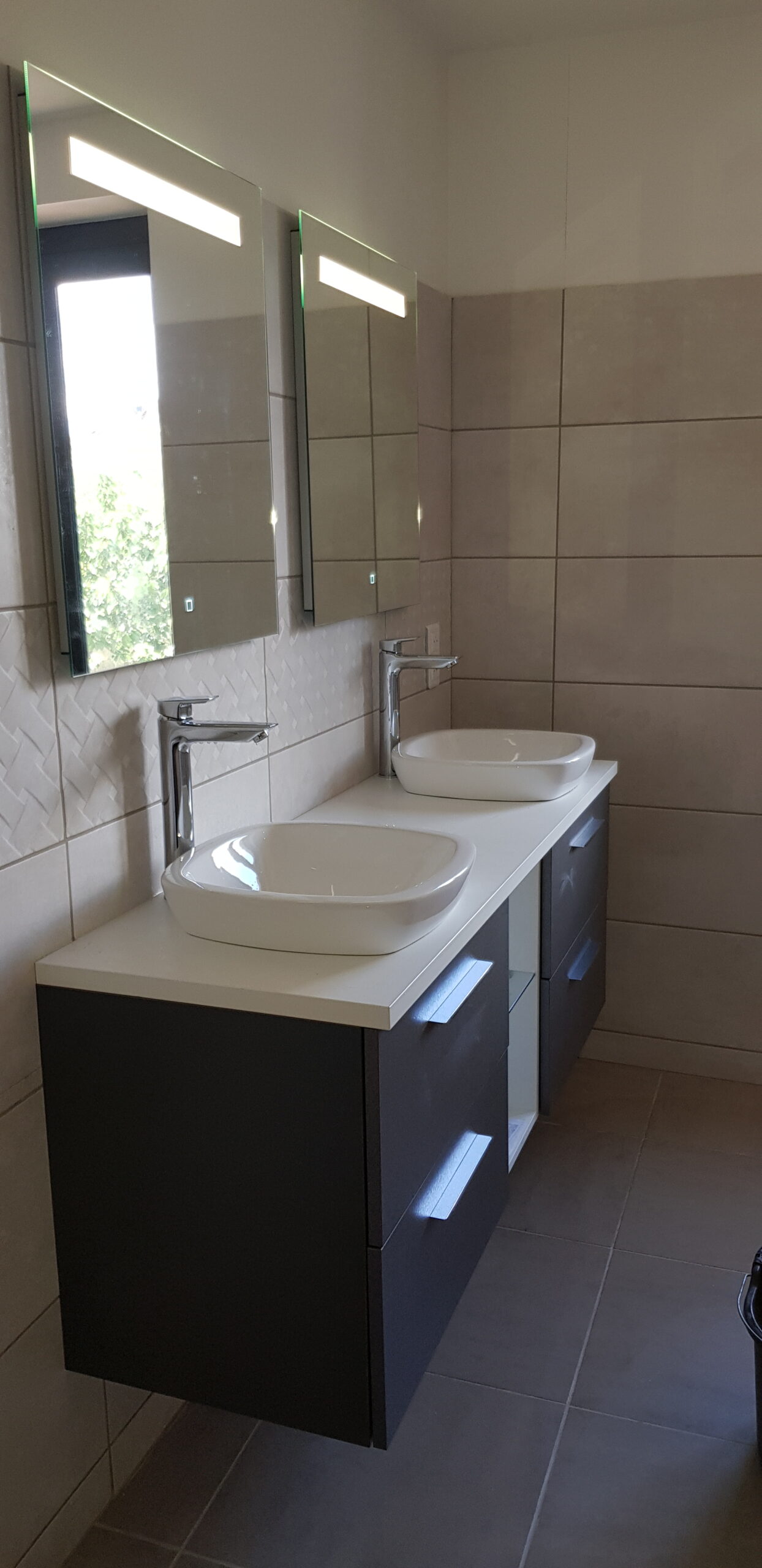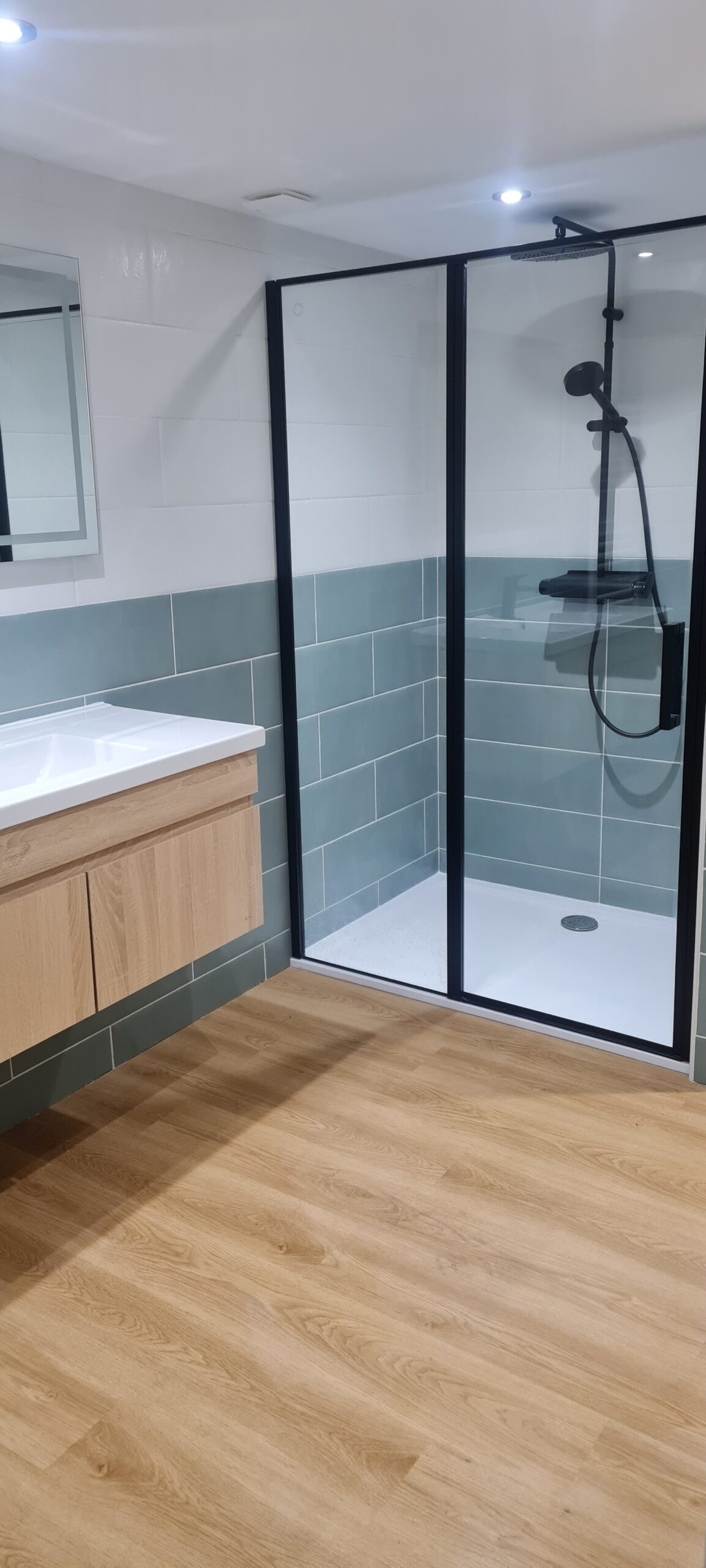 Douche, baignoire, meuble vasque, sèche-serviettes, éclairage… chaque élément est pensé pour conjuguer confort, sécurité et esthétique. Vous évitez la gestion de multiples intervenants et bénéficiez d’un suivi unique. L’objectif : une salle de bain bien pensée, durable et agréable à vivre au quotidien.